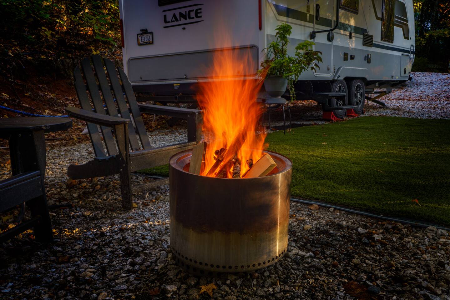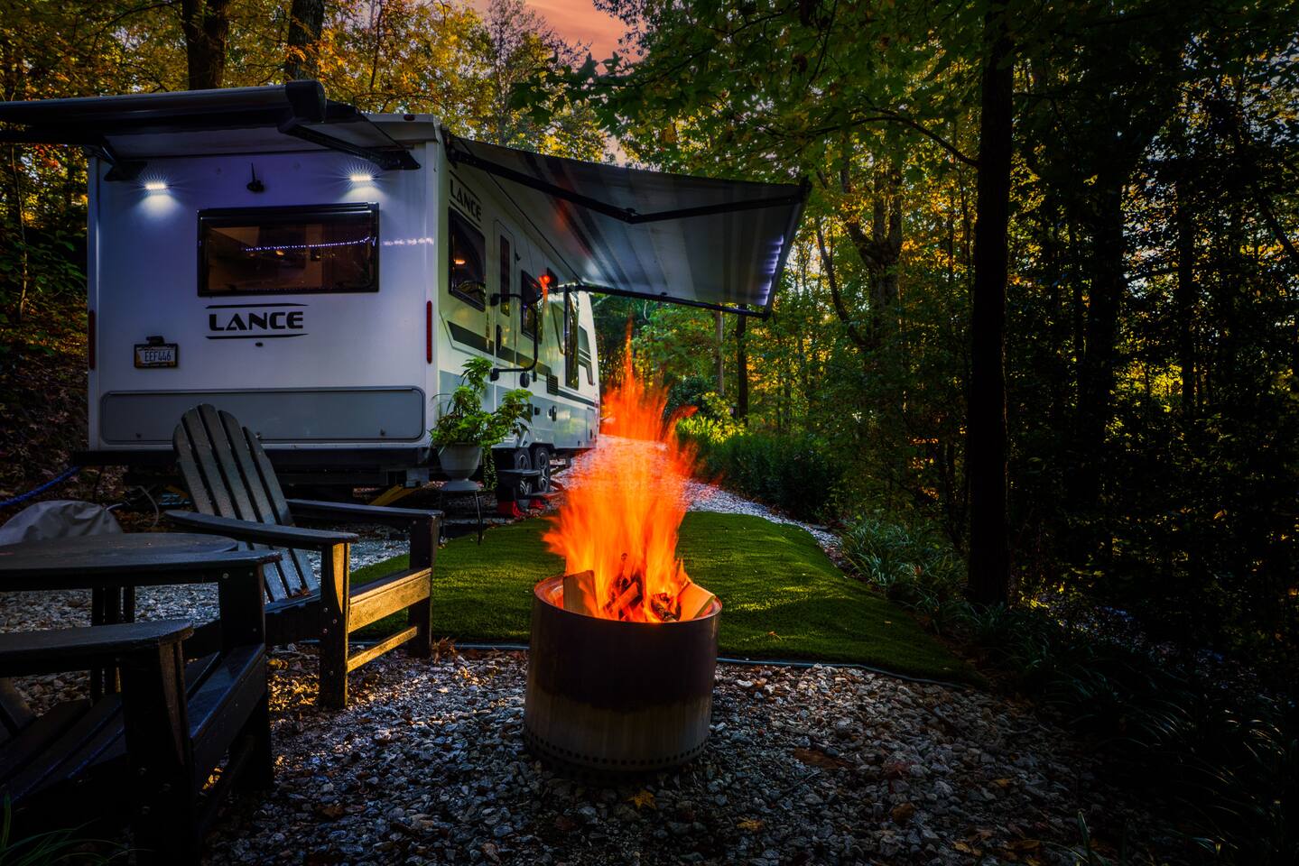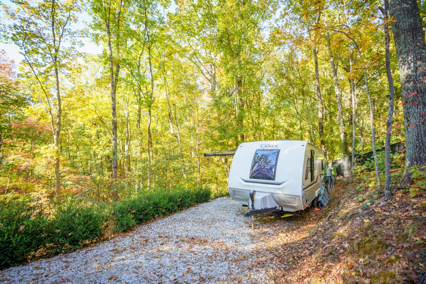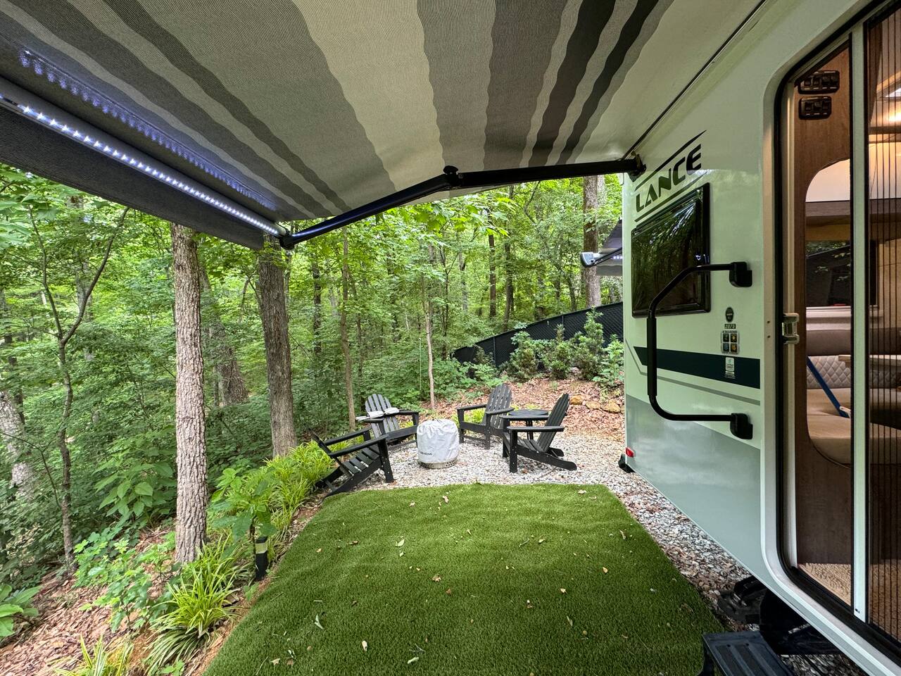 Nature Escape in Greenville, SC Stay @ Chicora Landing, our cozy Lance 2075 RV on the edge of 20 Paris Mountain acres. Enjoy a comfortable queen bed, well equipped kitchen, modern bathroom, outdoor seating, with fire-pit. Visit the nearby farm for fresh produce. Just a short drive to downtown Greenville's Falls Park, Swamp Rabbit Trail, Furman, Travelers Rest and Paris Mountain State Park. Perfect for adventurers, nature lovers, and city slickers alike!
