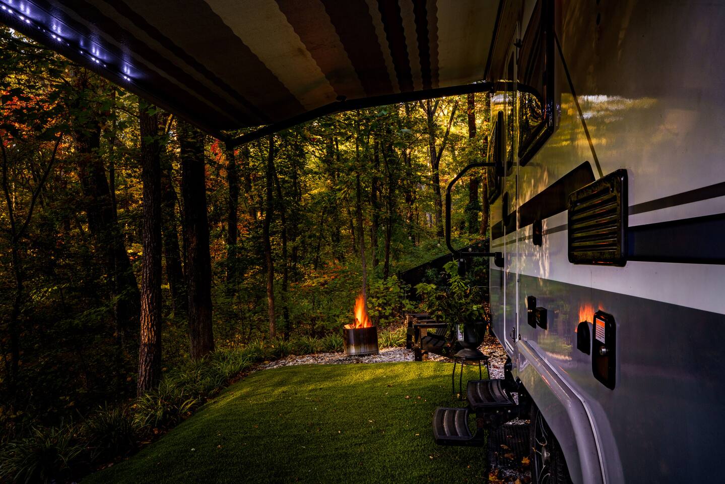 20 Acre Property with limited access trails, creek, & small waterfall. Site also has firepit and chairs. Please ask host prior to exploring the property beyond the immediate RV site.