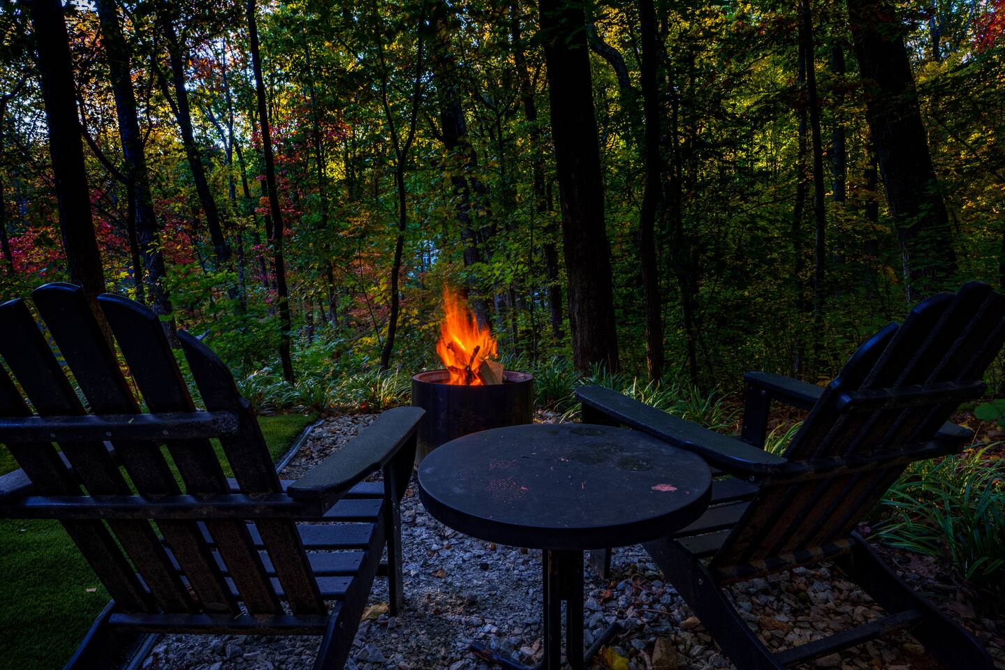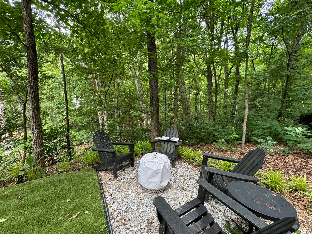 Comfy wooded neighborhood. Plenty of privacy but other homes are within sight at certain times of the year.